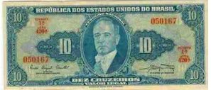 019 - 10 Cruzeiros (1943-1960) 1ª ESTAMPA - Série 420 Carlos Augusto Carrilho e Clemente Mariani | |||