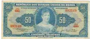 092 - 50 Cruzeiros (1949-1956) 2ª ESTAMPA - Série 492 Carlos A. Carrilho e Sebastião P. de Almeida | |||