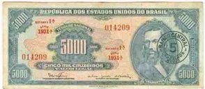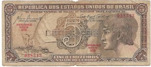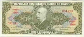 123 - 5 Cruzeiros Novos (1967-1972) 1ª ESTAMPA - Série 1931 Denio Nogueira e Otávio G. de Bulhões | |||