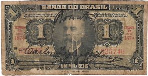 R193A - 1 Mil Réis (1923-1955) 1ª ESTAMPA - Série 187 Autografada (2 Chancelas) | |||